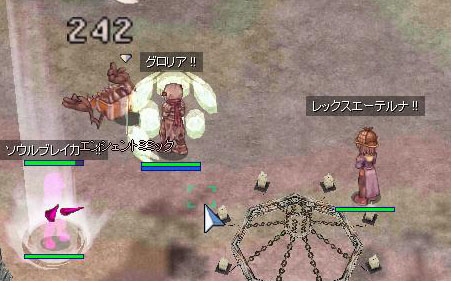 こいつATKが2000以上、回避もHITもMVP並でプリいてもかなりキツイ相手だと思われます。通常攻撃はごっつ痛いし、GX(闇と聖属性があるみたい)一発で転がされます。